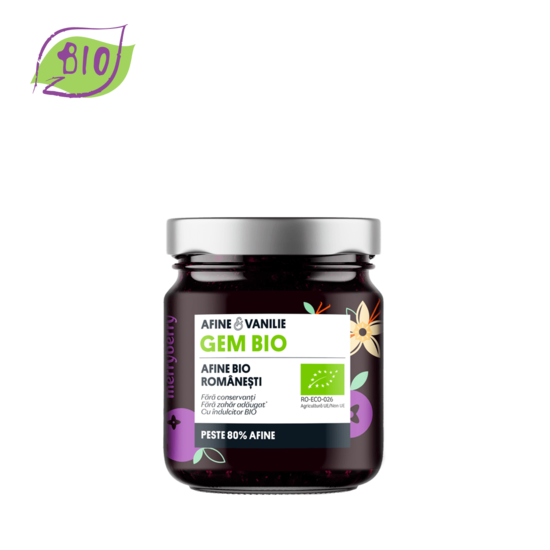 Gustul minunat al afinelor BIO MerryBerry se regăsește acum în gemul 100% natural pe care l-am pregătit cu grijă din recolta bogată și sănătoasă de la ferma noastră.